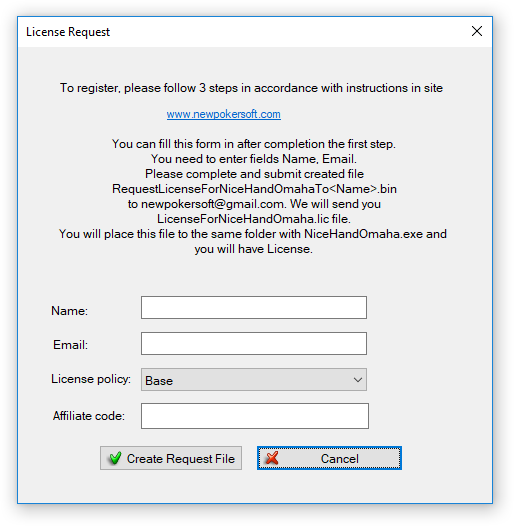 After that you have to click a Create Request File button. You can request a free two-week trial license of any level. After a license request file is created, send it to