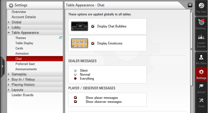 Fig.8-2 Settings of the Chat in PokerStars client