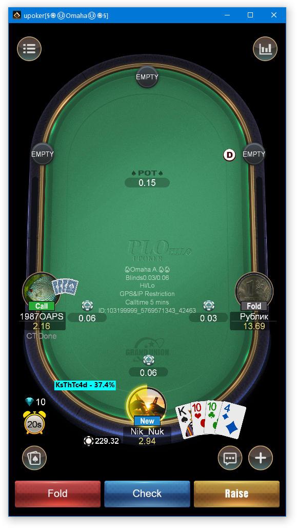 This chapter describes how to use NiceHandOmaha for Upoker client software on a PC. We remind you that English must be selected in the client.Upoker