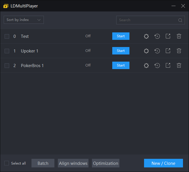 - Instances of LDPlayer (Upoker, PokerBros etc.)