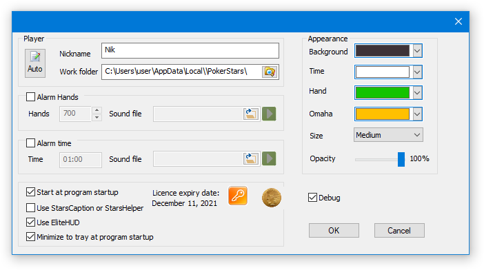 It is important to set Use Elitehud and Debug. Also you need to set Debug option in NiceHandOmahaConverter